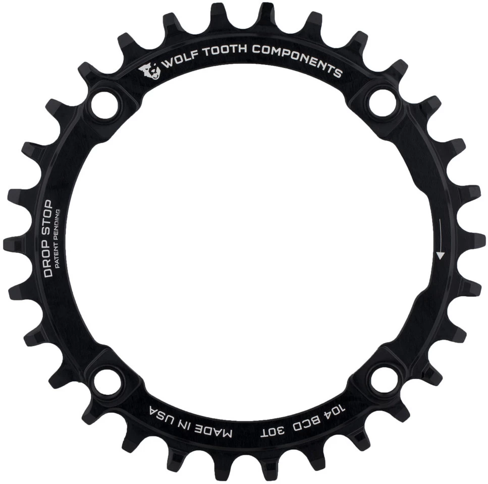 Das 104 BCD Kettenblatt war das erste Produkt überhaupt, das Wolf Tooth hergestellt hat. Es handelt sich um den am weitesten verbreiteten Lochkreisdurchmesser an 2-fach oder 3-fach Kurbeln. Das gewichtssparende Drop-Stop® Wide-Narrow-Zähnedesign von Wolf Tooth überzeugt durch sein Selbstreinigungspotenzial und als überaus verlässlicher Schutz gegen Kettenabwurf.