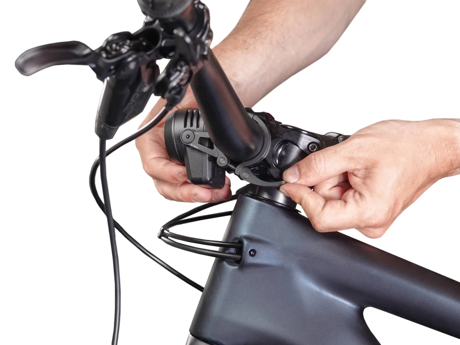 Die SL Mono wird zuverlässig von einem CNC-gefrästen Aluminiumschnellspanner am Lenker gehalten. Die zentrale Montage vor dem Vorbau schaut nicht nur gut aus sondern minimiert auch das Verletzungsrisiko im Falle eines Sturzes. Die Gummierung auf der Innenseite sorgt für perfekten Halt und verhindert Kratzer, auch bei schneller Montage, zuverlässig.