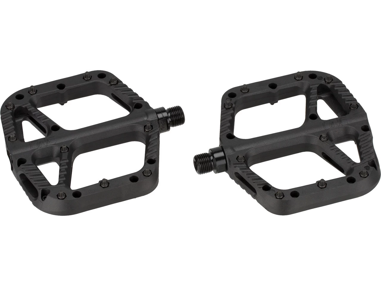 Die OneUp Components Comp Plattformpedale sind haltbar, groß und nicht allzu schwer. Ihr Design wurde detailliert durchdacht. Sie verfügen über dieselbe riesige Plattform wie das OneUp Aluminium Pedal (115 x 105 mm), sind aber ein wenig massiver und kosten nur die Hälfte. Bei den OneUp Composite Pedalen sind geschmeidige DU- und Industrielager verbaut. 10 austauschbare Stahl-Pins pro Seite sorgen für maximalen Grip.
