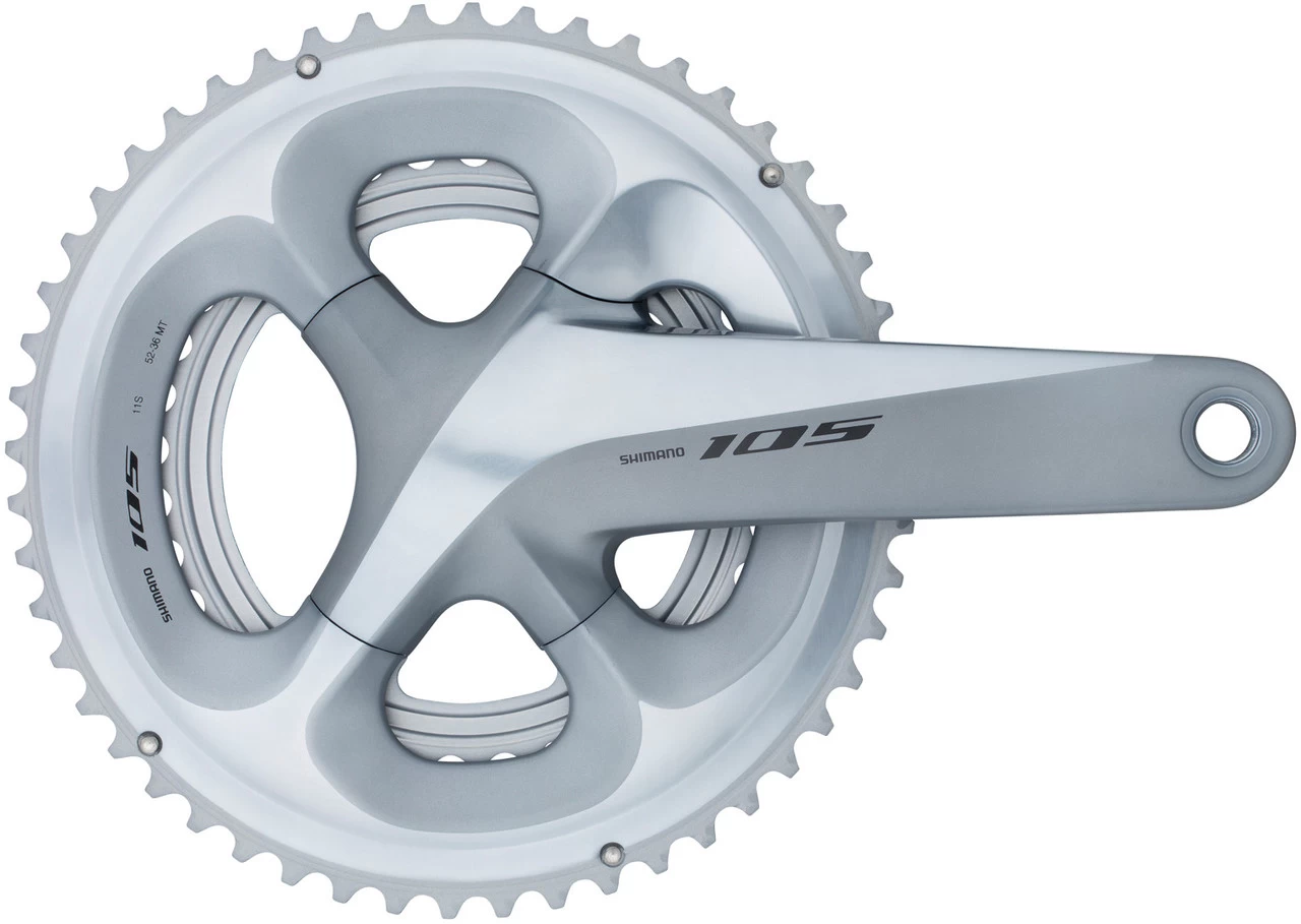 Spezifikationen:Einsatzbereich:Road, Cyclocross, GravelKompatibilität:Shimano 2×11-fachKettenblattbefestigung:110 mm Lochkreis, 4-Arm asymmetrischTechnische Daten:Serie:105 R7000Material Kurbelarme:AluminiumMaterial Kettenblätter:Aluminium / Kunststoff (GFRP), AluminiumMaterial Achse:StahlAbstufung:34-50, 36-52, 39-53Kurbelarmlänge:160,0 mm, 165,0 mm, 170,0 mm, 172,5 mm, 175,0 mmKettenlinie:43,5 mmQ-Faktor:146 mmAchsdurchmesser:24 mmKompatible Gehäusebreite (bei BSA-Innenlager):68 mmInnenlager (empf.):SM-BBR60 oder SM-BB72-41B Pressfit Hollowtech II (nicht im Lieferumfang)Kette (empf.):HG-EV 11-fach, HG-X11 (bspw. CN-HG601-11)Kompatibilität:Schaltgriff:ST-R9100, ST-R9120, ST-9001, ST-9000, SL-BSR1, ST-R8000, ST-R8020, ST-R8025, ST-6800, ST-5800, ST-R7000, ST-R7020, ST-R7025, ST-RS685, ST-RS505, ST-U5060, SL-RS700, SL-U5000, ST-RX810, ST-RX600, ST-R9150, ST-R9160, ST-R9170, ST-R9180, ST-9070, SL-9071, ST-R8050, ST-R8060, ST-R8070, ST-6870, ST-6871, ST-R785, ST-RX815Umwerfer:FD-R9100, FD-R8000, FD-5801, FD-R7000, FD-R9150, FD-R8050Innenlager:BB-R9100, SM-BB9000, SM-BBR60, SM-BB6700, SM-BB5700, BB-RS501, BB-RS500, SM-BB4600, SM-BB92-41B, SM-BB72-41B, SM-BB71-41B, BB-RS500-PBKette:CN-9000, CN-6800, CN-HG901-11, CN-HG701-11, CN-HG601-11, CN-LG500Features:gewichtsoptimiertes Kurbelarmdesign für exzellente Powertransfereffizienzüberarbeitetes Kettenblattzahnprofil vergrößert den Abstand zur Kette, daher kompatibel mit 135 mm Einbaubreite und 410 mm Kettenstrebenlängehohlgeformte Kurbelarme (Hollowtech)Kurbelarme und Kettenblätter eloxiertKettenblattschrauben aus EdelstahlTechnologien:Hollowtech II