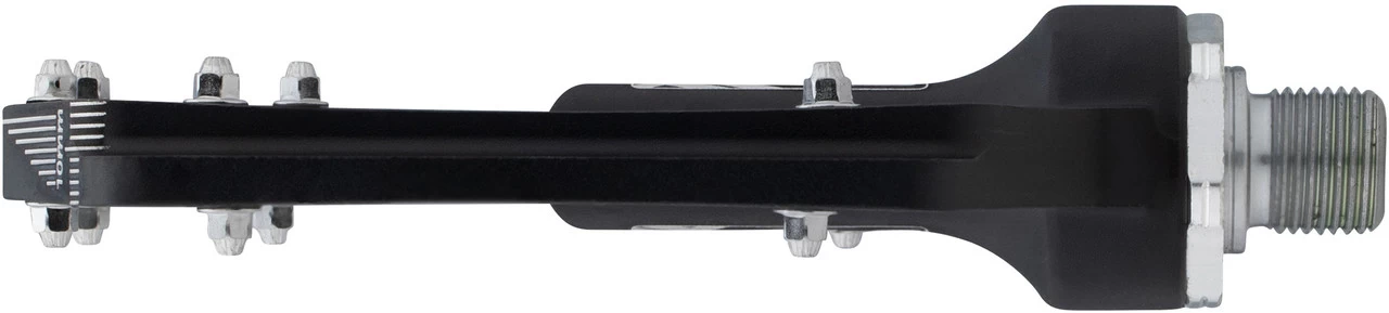 Das XLC PD-M14 Pedal ermöglicht durch seine neue Konstruktionsart eine bisher unerreichte, ultraflache Trittfläche von nur 10 mm. Die verkürzte Achsenkonstruktion lässt eine Trittposition unmittelbar auf Achshöhe zu und optimiert dadurch sowohl die direkte Kraftübertragung als auch die Fahrsicherheit. Die gedichteten, hochwertigen Lagerungen garantieren eine reibungsarme, langlebige Performance und die Austauschpins besten Grip.